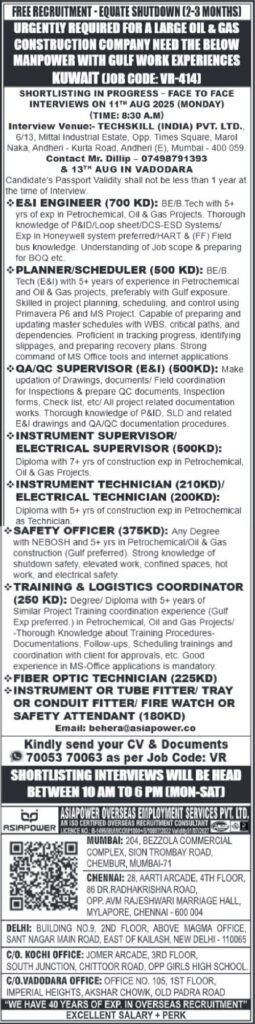 Gulf Kuwait Free Recruitment NaukriVidesh 09/08/2025 Gulf, Kuwait 0 Comments Share this post Facebook Twitter LinkedIn Pinterest gulf Kuwait Jobs Post navigation Previous PostAbu Dhabi VacanciesNext PostEurope Malta Jobs Leave a Comment Cancel reply Your Name Your Email Save my name, email, and website in this browser for the next time I comment. Your Comment Recent News Articles Fresh job related news content posted each day. 25/08/2025 Burger Maker 0 Comments Saudi Arabia Jobs | Burger Maker Saudi Arabia Jobs | Burger Maker | Fast Food Chef | American Cuisine Read More 25/08/2025 Electrician 0 Comments Qatar | Electrical Technician Qatar | Electrical Technician Read More 25/08/2025 Driver 0 Comments Saudi Arabia jobs | Trailer Driver Saudi Arabia jobs | Trailer Driver Read More